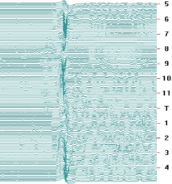 目前,國內大口徑長輸管道干線基本采用螺旋焊縫埋弧焊管道,經內檢測后可以清晰地看到螺旋焊縫和環(huán)焊縫信號(圖1)。內檢測缺陷定位時,通常先開挖參考環(huán)焊縫(也就是距離缺陷點最近的上游或者下游的環(huán)焊縫),通過螺旋焊縫與環(huán)焊縫的交角來判定開挖的參考環(huán)焊縫是否準確,缺陷定位開挖較方便。