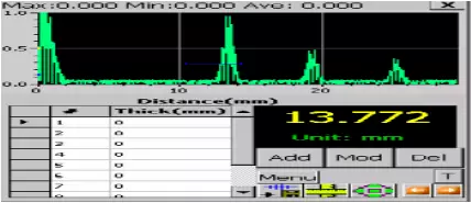 根據(jù)超聲波脈沖反射原理來進行厚度測量的,當探頭發(fā)射的超聲波脈沖通過被測物體到達材料分界面時,脈沖被反射回探頭,通過精確測量超聲波在材料中傳播的時間來確定被測材料的厚度。