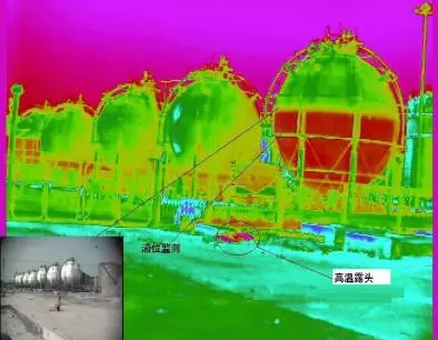 可采用在線熱像儀進行泄露分析檢測,實現(xiàn)實時進行觀測和分析管線法蘭、機泵密封、儲罐等部位的泄露。