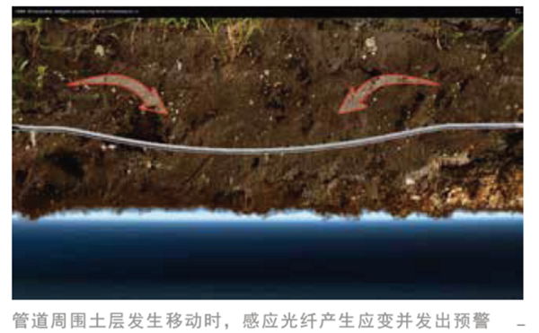 為監(jiān)測管道的變形狀況,將光纖鋪設(shè)在管道的表面,管道任何的形變都直接反饋到光纖中。監(jiān)測形變過程中光纖的拉伸和壓縮變化,并觸發(fā)警報(圖 5)。