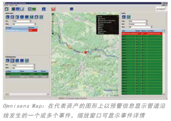 (6) Omnisens Map:簡潔明了的GIS界面,用于識別線路上與之KPs和GPS坐標關(guān)聯(lián)的預警位置,并將事件演變過程虛擬化顯示出來。