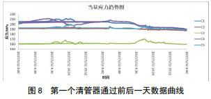 3.4 清管器通過時(shí)管道應(yīng)力變化對(duì)比