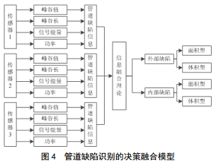 管道缺陷檢測診斷是一個多源信息融合處理與狀態(tài)識別的過程,多通道傳感器的數(shù)據(jù)具有多源性[7]。因此,基于信息融合對管道的缺陷識別進行決策融合識別,如圖 4所示。