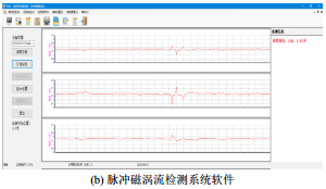 利用式(1)所示的脈沖磁渦流原理,研制了油氣管道脈沖磁渦流探傷系統(tǒng)(PMS-I型),硬件如圖 5(a)所示,軟件界面如圖 5(b)所示。為了驗證 小信號識別與診斷模型的有效性,利用該設(shè)備開展了室內(nèi)與現(xiàn)場試驗。