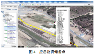 (2)應(yīng)急管理。描述管線周邊應(yīng)急物資儲備點(diǎn)具體位置,以及儲存應(yīng)急物資種類和具體數(shù)量,以便管道沿線發(fā)生泄漏,選擇最佳、最近應(yīng)急物資儲備點(diǎn),選取應(yīng)急搶險所需物資,為應(yīng)急搶險爭取時間,提高應(yīng)急搶險效率。某應(yīng)急物資儲備清單見下圖 4。