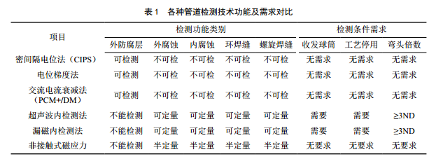 1 管道檢測(cè)技術(shù)現(xiàn)狀對(duì)比