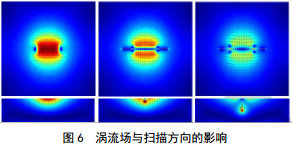 切向渦流陣列TECA線圈的布置改善了表面裂紋失效缺陷的響應(yīng),渦流EC方向垂直于掃描方向,渦流場(chǎng)繞過其周圍貼近縱向裂縫,直接受表面破裂及其尺寸的影響,如圖 6和圖 7所示。