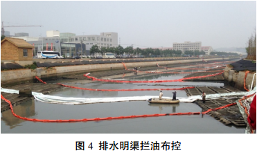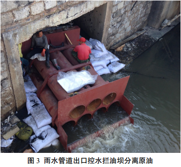 (6)在雨水管網(wǎng)出口、排水明渠、入海口、污水處理廠設置8處攔截點,共布設25道圍油欄、 51道吸油拖欄、 3道活性炭壩和1道控水攔油壩,用撇油器、抽油機、吸油氈等進行油品回收,防止原油入海。污水處理廠及時開閘接納含油污水,采用抽油泵對浮油進行回收。