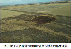 2017年11月16日,由TransCanada公司運營管理的KeyStone輸油管道在美國南達科塔州的埃默斯特市附近發(fā)生破裂泄漏(圖 1)。該管道的運行控制中心位于加拿大阿爾伯特省卡爾加里,數(shù)據(jù)采集和控制系統(tǒng)(SCADA)監(jiān)測到發(fā)生泄漏即刻關斷管道,現(xiàn)場確認管道發(fā)生破裂,泄漏量為794.9 m3。