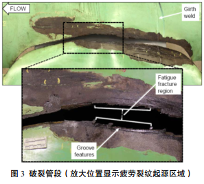 NTSB確定, Keystone管道發(fā)生失效的原因是疲勞裂紋開裂,裂紋來源于管道施工建設期對管道外表面的機械損傷,運營期受機械損傷的溝槽形成的裂紋不斷增長和擴展到臨界尺寸,最終導致管道破裂。