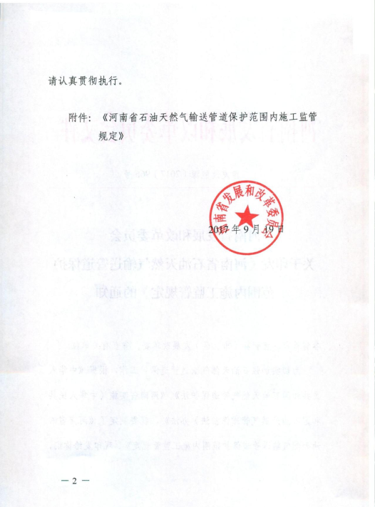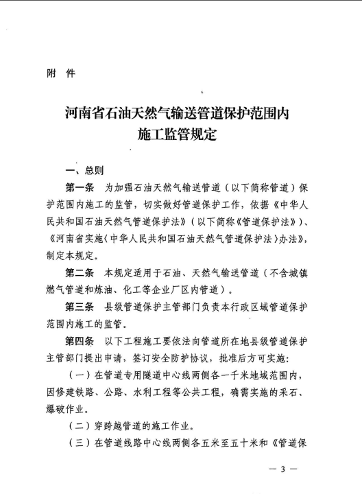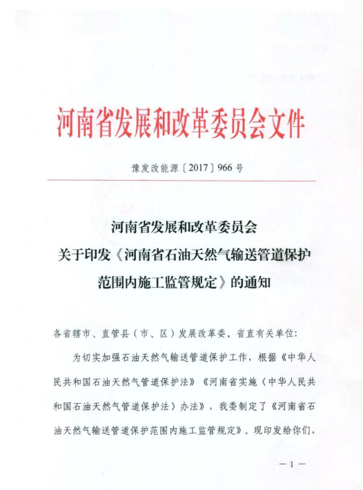 河南省發(fā)展和改革委員會關(guān)于印發(fā)《河南省石油天然氣輸送管道保護(hù)范圍內(nèi)施工監(jiān)管規(guī)定》的通知