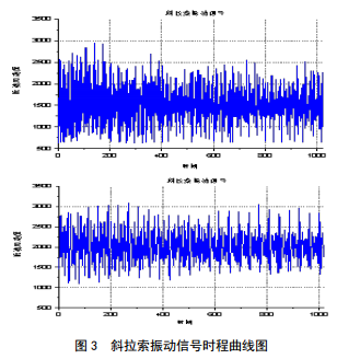 利用安裝在拉索上的加速度傳感器,使用振動法測試得到索力。加速度傳感器將索的隨機(jī)振動信號轉(zhuǎn)換為電信號,振動信號經(jīng)過電荷放大和濾波處理后,對其進(jìn)行頻譜分析,根據(jù)頻譜圖來識別出斜拉索的自振頻率。根據(jù)弦振動理論,已知索的自振頻率以及材料參數(shù)和索長的情況下,索力與自振頻率的關(guān)系式為: