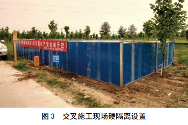 (3)一級(jí)硬隔離布控。安全邊界采用鋼管腳手架圍欄或彩鋼板圍擋等設(shè)置劃定隔離,隔離上沿距離地面高度不低于2 m,顏色為藍(lán)色或紅色(圖 2)。現(xiàn)場(chǎng)搭設(shè)看護(hù)帳篷和監(jiān)控?cái)z像等人防、技防設(shè)施(圖 3)。