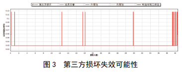 馬 仙 輸 氣 管 道 自 投 產(chǎn) 以 來 未 發(fā) 生 過 第 三方施工活動。管道第三方損壞失效可能性分值0.0 294~0.1 176,評價結(jié)果如圖 3所示,紅色折線代表第三方損壞指標導致的失效可能性。
