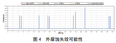 可以看出,管道全線大部分管段失效可能性由外腐蝕、內(nèi)腐蝕和制造與施工缺陷三項指標主導。