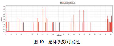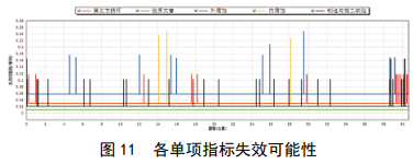 上述分析結(jié)合RiskScoreTP管道風險評價軟件計算結(jié)果,得出馬仙輸氣管道總體失效可能性及各單項指標失效可能性如圖 10、圖 11所示。