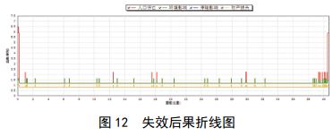 馬仙管道傷亡后果主要集中在管道出站馬北注采站和進站南八仙聯(lián)合站,兩個站場處有人口分布,或發(fā)生腐蝕穿孔泄漏,失效后果折線圖如圖 12所示。