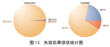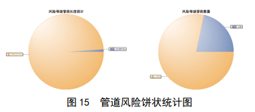 失效后果餅狀統(tǒng)計圖如圖 13所示,左側(cè)為按管道長度統(tǒng)計、右側(cè)為按管段數(shù)量統(tǒng)計。管道失效后果分為1~5級,從低到高分別表示輕微影響、一般影響、較大影響、重大影響及特別重大影響,統(tǒng)計結(jié)果顯示馬仙輸氣管道失效后果分級為1級98.44%, 2級0.58%, 3級0%, 4級0%, 5級0.98%。