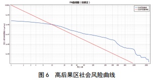 傷亡10人以上的社會風險處于不可接受區(qū)域內(nèi),傷亡100人以上的社會風險概率為1E-7.2/a,大于社會 風險概率1E-8/a的要求,如圖 6所示。