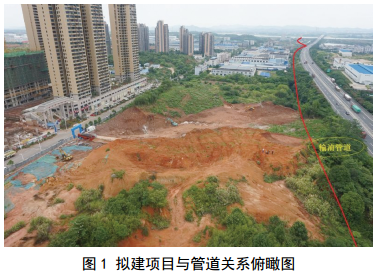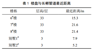 2017年,業(yè)主湖南湘潭永達(dá)機(jī)械制造有限公司(以下簡稱永達(dá)機(jī)械)在湘潭市九華經(jīng)濟(jì)開發(fā)區(qū)內(nèi)籌建高層樓盤“永達(dá)九華府”房產(chǎn)開發(fā)項目,總用地面積69 816平方米,土地性質(zhì)為城鎮(zhèn)混合住宅用地(含住宅和商業(yè)),擬居住人口為1 616戶5 172人。項目位于長郴管道K241+600米,管道走向如圖 1所示,與長郴管道距離如表 1所示。