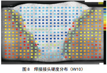 結果表明:在環(huán)焊縫內部,不同位置的屈服強度、抗拉強度不同,其分布規(guī)律與硬度存在明顯相關性,低硬度區(qū)的屈服強度與抗拉強度均低于其他區(qū)域,低硬度區(qū)可能是由于后一焊道對前一焊道的回火所致。所有小試樣拉伸的屈服強度均低于標準中對焊接接頭的屈服強度要求,焊接接頭屬于低強匹配接頭。