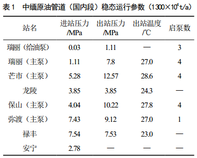 選擇沙特輕油,以設計輸量為穩(wěn)態(tài)開始模擬(表 1)。
