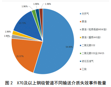 2.2 失效事件數(shù)量與輸送介質(zhì)的關(guān)系