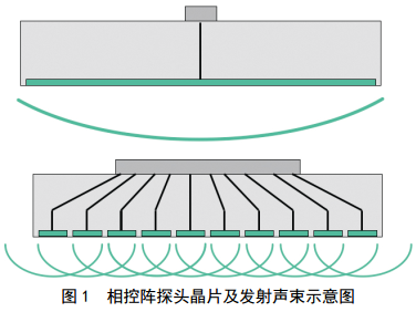 使用微型探頭陣列產(chǎn)生超聲波束,建立聚焦法則使電子裝置控制每個(gè)陣列單元的發(fā)射和接收時(shí)間,從而產(chǎn)生出多個(gè)超聲波束,通過(guò)控制陣列的激發(fā)和接收時(shí)間,控制波束角度、聚焦深度、聚焦尺寸等,實(shí)現(xiàn)工件的快速掃描成像[2]。