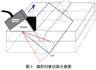 (3)檢測(cè)中不需要進(jìn)行鋸齒等多維掃查,僅需要 一維掃查即可對(duì)焊縫進(jìn)行全面檢測(cè),檢測(cè)效率高[4]。