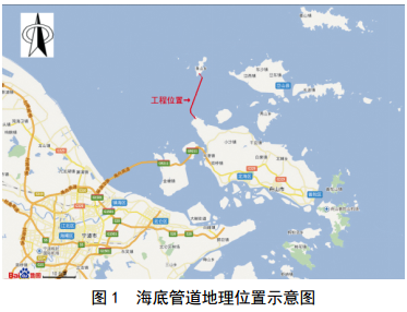 為滿足國民經(jīng)濟可持續(xù)發(fā)展、提高國家原油戰(zhàn)略儲備能力和保障石油供應(yīng)安全,浙石化在浙江省舟山市建設(shè)綠色石化4 000萬噸/年煉油一體化項目,其中原油儲運系統(tǒng)(一期)馬目油庫—魚山輸油管道工程起點為馬目油庫,馬目北端西側(cè)為入海點,終點在魚山島登陸,涉海管段長16.7 km,管道建設(shè)位置見圖 1。
