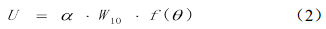 式中α 為風(fēng)拖曳系數(shù), f(θ)為科氏力引起的偏轉(zhuǎn)角的函數(shù), θ 為偏轉(zhuǎn)角。