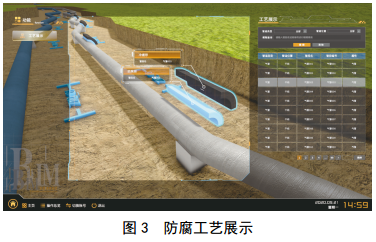 (1)涂層工藝展示。通過三維視圖方式展示管道管壁涂層工藝,管道涂層分層展開,逐層展示不同涂層材料信息。