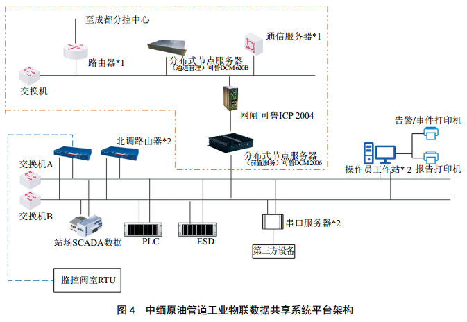(1)數(shù)據(jù)安全問題。在保證不影響數(shù)據(jù)源和符合相關(guān)安全規(guī)范的前提下,保障數(shù)據(jù)安全。解決方案是:對油氣管道工業(yè)專網(wǎng)的邊界進(jìn)行數(shù)據(jù)流向控制,同時(shí)結(jié)合國家計(jì)算機(jī)網(wǎng)絡(luò)安全等級保護(hù)標(biāo)準(zhǔn)進(jìn)行系統(tǒng)設(shè)計(jì)。