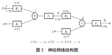 BP神經(jīng)網(wǎng)絡(luò)法可以描述多因素之間的非線性關(guān)系,且具有很強(qiáng)的非線性映射能力和強(qiáng)大的自學(xué)習(xí)能力,可映射任意復(fù)雜的非線性關(guān)系。BP算法由兩部分組成,可概括為:信息的正向傳播與誤差的反向傳播。在正向傳播過(guò)程中,輸入的信息從輸入層經(jīng)過(guò)隱含層逐層計(jì)算傳向輸出層,若在輸出層沒(méi)有得到預(yù)期輸出,則此時(shí)計(jì)算出輸出層的誤差變化值,然后進(jìn)行反向傳播,將誤差信號(hào)沿原來(lái)的連接通路反傳回來(lái),并修改各層神經(jīng)元的權(quán)值,直到達(dá)成期望目標(biāo)(圖 2)。