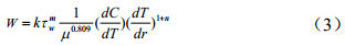 為徑向溫度梯度,℃/mm;k、m、n為常數(shù),需要通過(guò)實(shí)驗(yàn)確定。相應(yīng)的蠟沉積速率計(jì)算公式為: