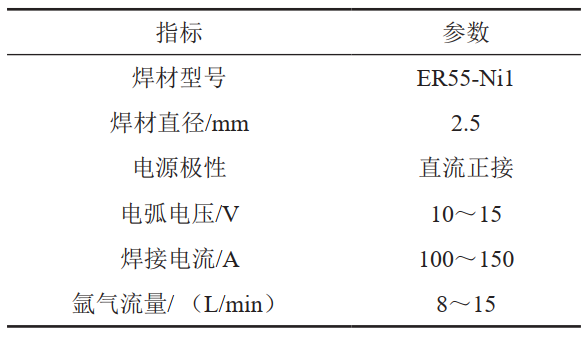 以Φ1219 mm×18.4 mm管道為例,氬弧焊選用大西洋CHG-55C1的ER55-Ni1焊絲。焊接工藝參數(shù)見(jiàn)表 1。