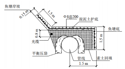 近年來高速公路的快速發(fā)展,給周邊地形地貌帶來了較大改變。施工單位為節(jié)省運(yùn)輸及施工成本,就近直接在高速公路周邊開挖取土修建路基,形成了一個(gè)個(gè)取土坑。經(jīng)過長(zhǎng)時(shí)間雨水積存和地下水滲入以后多形成了魚塘。管道經(jīng)過這類取土坑,一般采用大開挖或穿越方式。取土坑邊坡因?yàn)殚_挖和雨水沖刷導(dǎo)致土質(zhì)松軟,邊坡不穩(wěn),極易坍塌[1]。造成管道及光纜裸露、懸空風(fēng)險(xiǎn)。