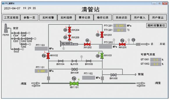 通過查詢調(diào)控中心和上游分輸站的 SCADA 系統(tǒng)事件記錄,發(fā)現(xiàn)4月1日0點(diǎn)35分19秒起,SCADA 系統(tǒng)多次交替出現(xiàn)與 RTU 通訊中斷及通訊恢復(fù)事件記錄。0點(diǎn)37分07秒,記錄清管站閥門XV1103全開到位。但該時(shí)間段內(nèi)無遠(yuǎn)程下發(fā)開閥命令及其他相關(guān)操作事件記錄。