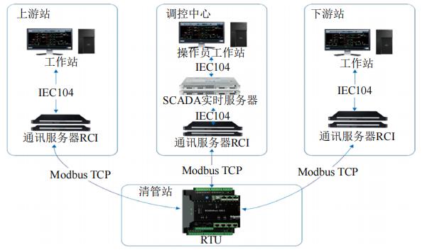 有人管理站場及調(diào)控中心均使用阿克泰姆 ViewStar ICS SCADA 軟件進(jìn)行數(shù)據(jù)采集和監(jiān)控,使用前置通訊服務(wù)器 RCI 實(shí)現(xiàn)數(shù)據(jù)通訊和協(xié)議轉(zhuǎn)換,數(shù)據(jù)流向如圖 2所示。