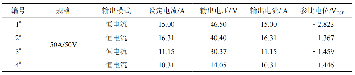 表 3 治理措施實施后恒電位儀的參數(shù)及運行狀態(tài)