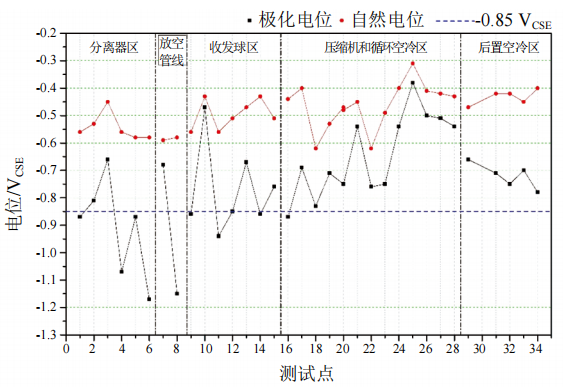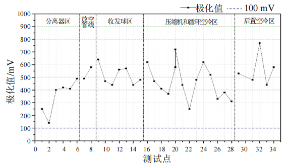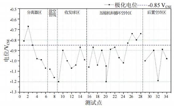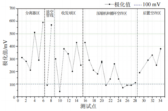 (2)需要定期對站場區(qū)域陰極保護系統(tǒng)進行測試評價,及時發(fā)現(xiàn)存在問題,并針對性整改。