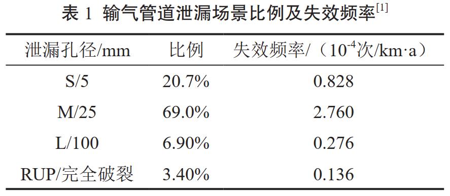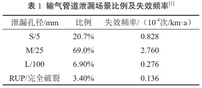 根據(jù)SY/T 6859―2012《油氣輸送管道風險評價導則》,管道泄漏場景選取如表 1所示。