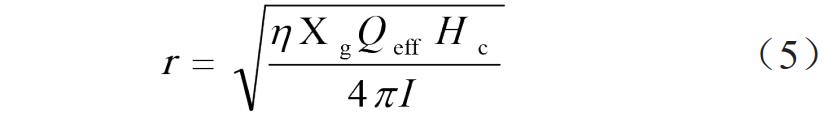式中,I為熱輻射通量,η為燃燒系數(shù),Xg為輻射系數(shù),Hc為燃燒熱。上式轉(zhuǎn)換后可得不同熱輻射通量下對應的著火半徑、致死半徑及潛在影響半徑: