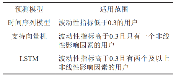 基于需求側(cè)分析,可以對任務(wù)周期內(nèi)的市場需求進(jìn)行預(yù)測并確定各個需求點(分輸點)的重要性。天然氣用戶按用氣用途分類,主要包括燃?xì)庥脩簟NG用戶、電廠用戶和工業(yè)用戶四大類型。一般而言,天然氣管網(wǎng)各個分輸點都包含多個和多種天然氣用戶。各用戶所適用的預(yù)測模型是根據(jù)用戶特性確定的,其中波動性是影響需求預(yù)測效果的重要因素。因此建立波動性指標(biāo),以此為用戶選取適用的預(yù)測模型。本文采用時間序列法、支持向量機(jī)和LSTM模型作為用戶需求預(yù)測的三種方法進(jìn)行建模,各方法的使用范圍如表 1所示。