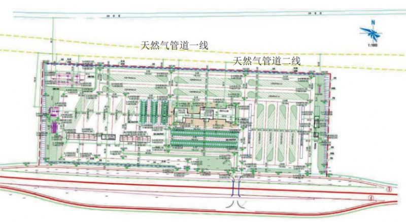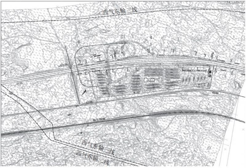 圖 1 紅衛(wèi)服務(wù)區(qū)建設(shè)規(guī)劃與管道位置關(guān)系