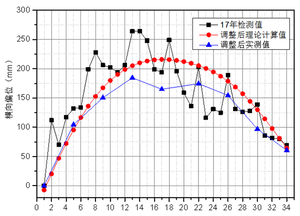 圖 6 線形調(diào)整后主梁橫向偏位情況