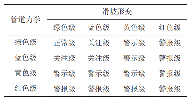 表 1 管道力學(xué)多級綜合預(yù)警等級