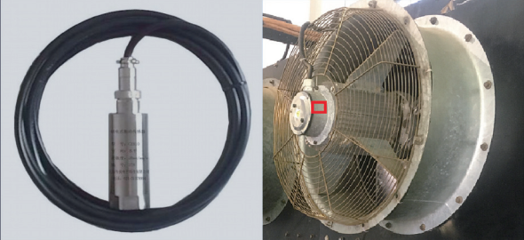 (1)傳感器選型及安裝。在排煙道位置安裝溫度傳感器采集廢氣溫度,間接測(cè)量燃燒室溫度。排煙道材質(zhì)為鑄鐵,在排煙道靠近燃燒室側(cè)開(kāi)孔,選擇安裝磁吸式溫度傳感器CZ51(量程﹣200 ℃~1500℃),共計(jì)6個(gè),如圖 2所示。在空冷器風(fēng)扇電機(jī)外殼安裝溫度振動(dòng)一體化傳感器CZ886(量程﹣50℃~500℃,0~1000 um),共計(jì)4組,如圖 3所示。
