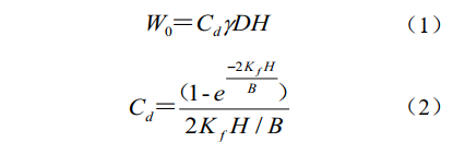 式中:γ為土層重度,N/m3;B為溝槽寬度,m;W0為單位管長(zhǎng)的豎向永久荷載,N/m;Cd為土壓力集中系數(shù);D為管徑,m;H為管頂覆土厚度,m;Kf為土壤吸附作用強(qiáng)度系數(shù),砂土及腐殖土(干燥)0.192,砂土、腐殖土(濕的和飽和的硬黏土)0.165,塑性黏土0.148,流動(dòng)性黏土0.132。表 1取砂土及腐殖土(干燥)Kf為0.192進(jìn)行計(jì)算。