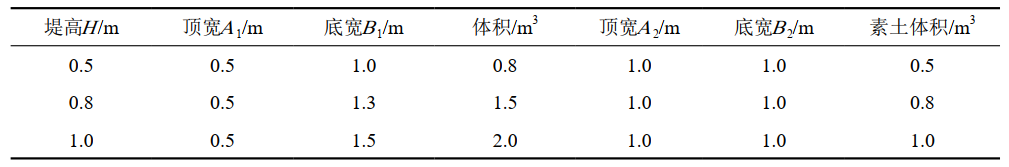 表 1 Ⅱ型草袋管堤工程量表(每延米長)